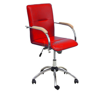 Красные офисные кресла для персонала из экокожи